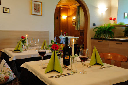 In the evening, the owner himself will treat you to varied menus containing Mediterranean and South Tyrolean dishes, made from locally-grown ingredients that will bewitch your palate. Every day a fresh salad buffet rounds off the culinary offering in a delightful way. Depending on the current season of the year, special themed evenings are made. The dishes are served in our dining room, which has been renovated recently or in our traditional parlour.