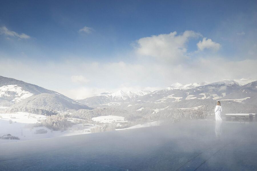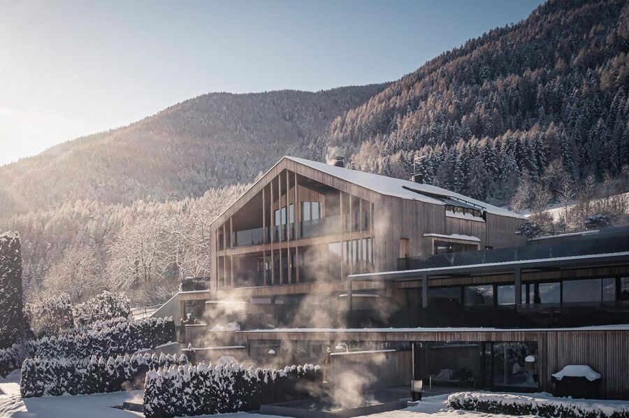 Erhaben über Bruneck, in Stefansdorf gelegen, verbindet das 5-Sterne-Hotel Winkler zeitgenössischen Luxus mit der Dynamik eines Aktivurlaubs. Perfekt für Paare, Familien, Skifahrer und Golfer, bietet es den idealen Ausgangspunkt für Erlebnisse am Kronplatz – nur wenige Minuten von den modernen Aufstiegsanlagen in Reischach entfernt. Gäste der Winklerhotels genießen zudem 100 % Ermäßigung auf das Greenfee des Golfclubs Pustertal. Die markante Architektur des Hauses birgt ein außergewöhnliches Wellnessangebot: sieben Pools, darunter die spektakuläre Sky Pool und eine Rooftop Lounge in der Adults-only-Area. Ergänzt wird das Angebot durch Yoga-Retreats und Personal-Training. Hier wird Wohlbefinden in all seinen Facetten spürbar – in einem Ambiente, das Körper und Geist gleichermaßen inspiriert.