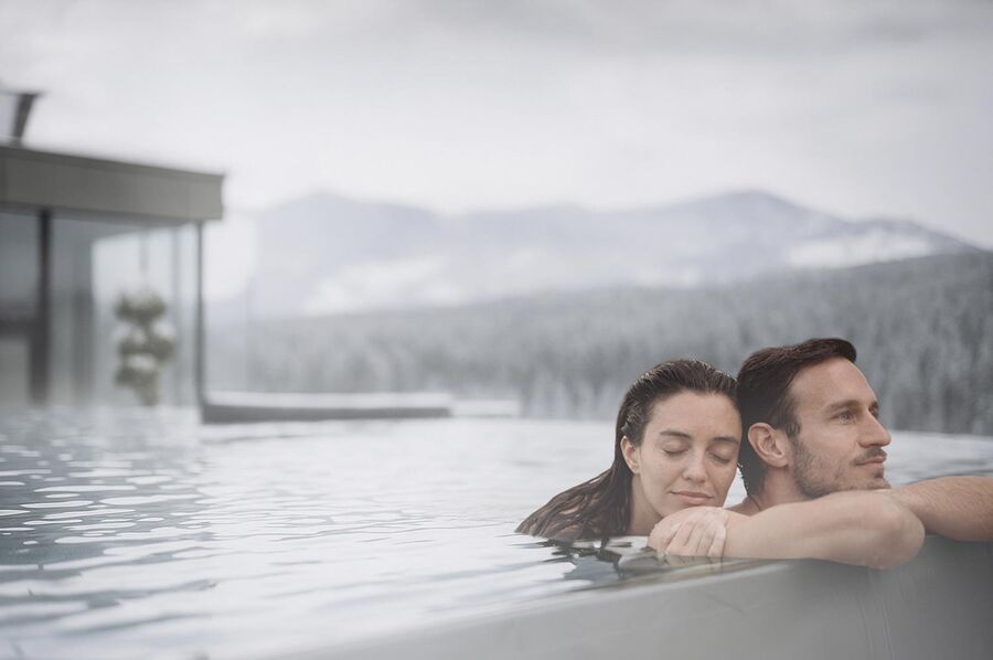 Das Wellnessangebot ist eine Oase für Körper und Geist: ein Naturbadeteich, eine großzügige Saunalandschaft und verschiedene Pools – darunter ein entspannender Onsen-Pool und ein spektakulärer Infinity-Pool – laden zum Auftanken und Loslassen ein.